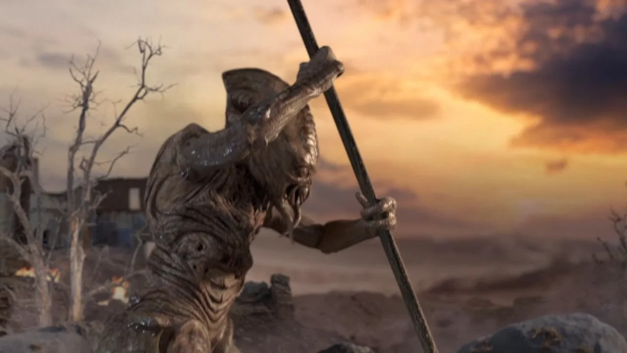 TNT wanted to tease the new season of Falling Skies and the imminent betrayal by the Skitter race. Shot at 160 FPS, the actual take lasted less than 5 seconds in realtime. (The rest of the time was spent waiting on the Skitter to come out of his space-trailer.)